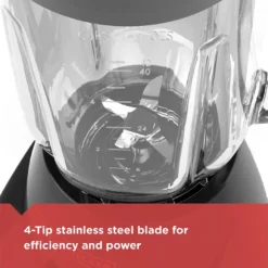 - The multi-level stainless steel blade blends at multiple levels to improve efficiency and blending power