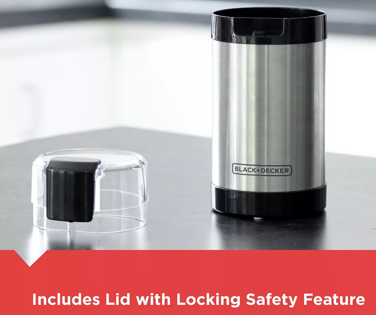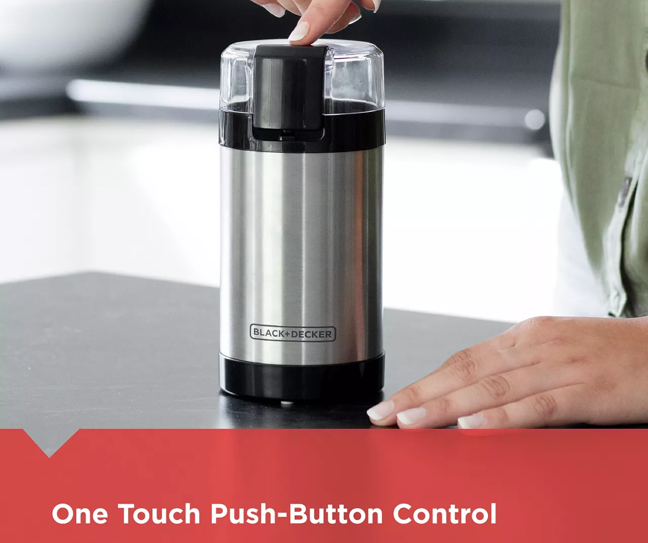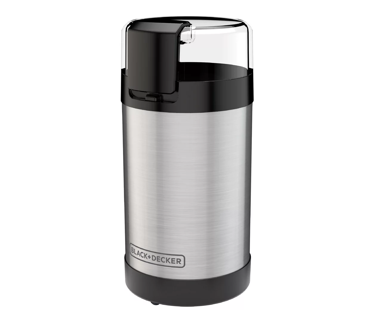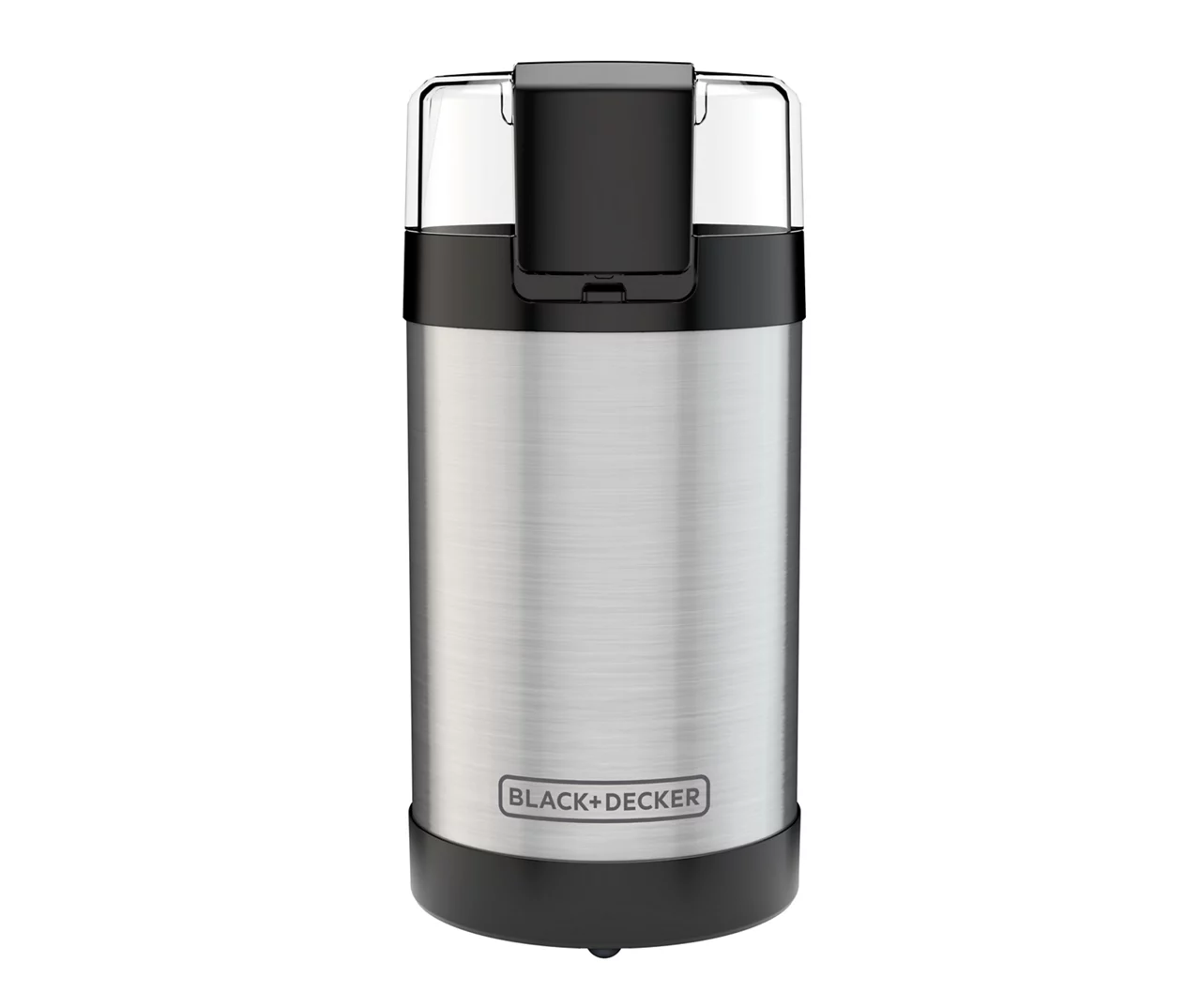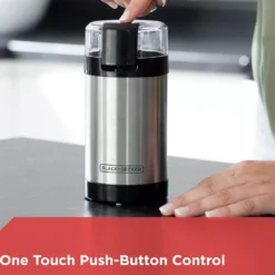 Grind your favorite flavored brews in no time with this convenient coffee grinder from Black & Decker. Featuring a sleek metal design that looks great on a counter, the grinder features stainless steel blades that pulse through beans and nuts at the simple push of a button. Rubberized feet prevent it from moving as a convenient locking lid keeps coffee grounds off of the floor or counter.