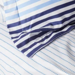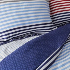 Refresh a master or guest bedroom from headboard to footboard with the bright blue, red and white stripes of this all-in-one bedding set from Real Living. Soft microfiber fabric is sure to keep you cozy and comfy through the night.