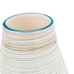 Arrange and display your latest stems, picks and other decorative items with the chic simplicity of this ceramic vase. Its curved silhouette is decorated with simple stripes in blue and neutral shades that easily complement your living space.