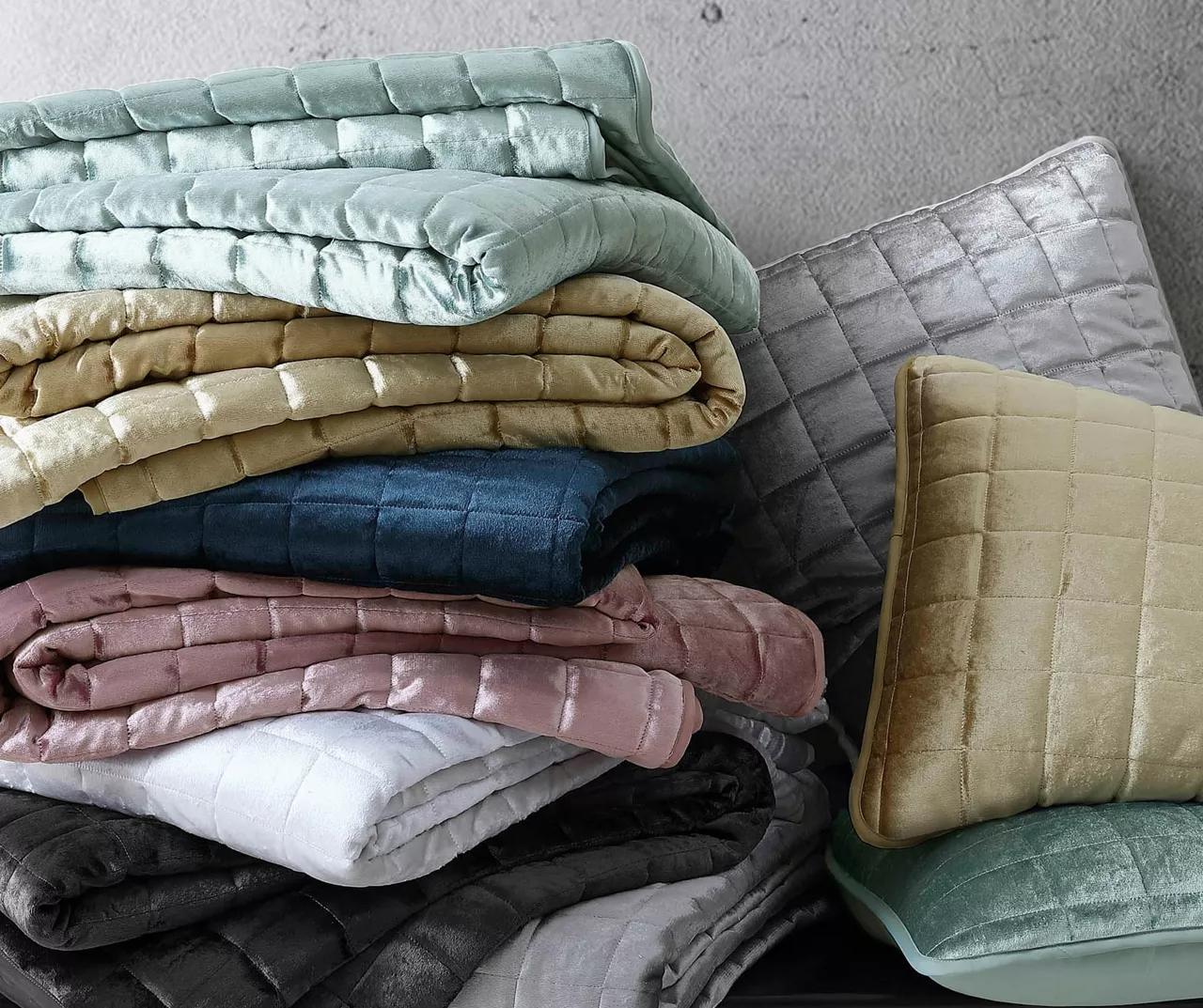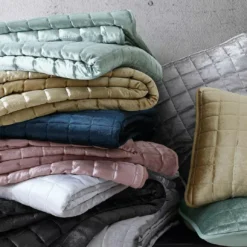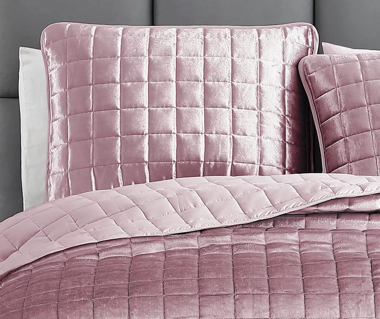 Lounge in luxury when you dress the bed in this shimmering velvet coverlet set defined by square quilting for textured elegance. The lightweight design provides cool coverage on warm nights, or can work as a cozy extra layer when the temperature drops.