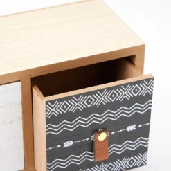 From Real Living’s Bohemian Farmhouse collection, this tabletop cabinet features three drawers, each styled with a geometric pattern on the front for some boho flair. Its simple design and tri-color palette makes for a charming place to store and organize your trinkets, craft supplies or other treasures.