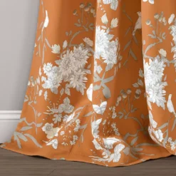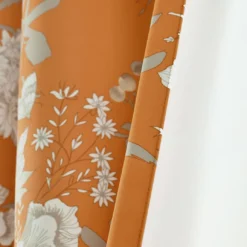 - Nature-inspired print showcases beautiful florals, branches and birds on an orange background