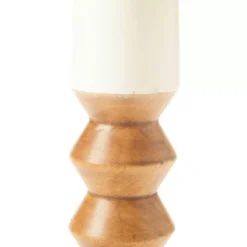 Give your candles a contemporary platform with this pillar candle holder crafted from wood and featuring a sleek two-tone design. Undulating shapes define the lower half before smooth lines complete the top half, for a modern look that’s sure to stand out. It’s perfect to place as part of a centerpiece or as a statement accent on a mantel or shelf.