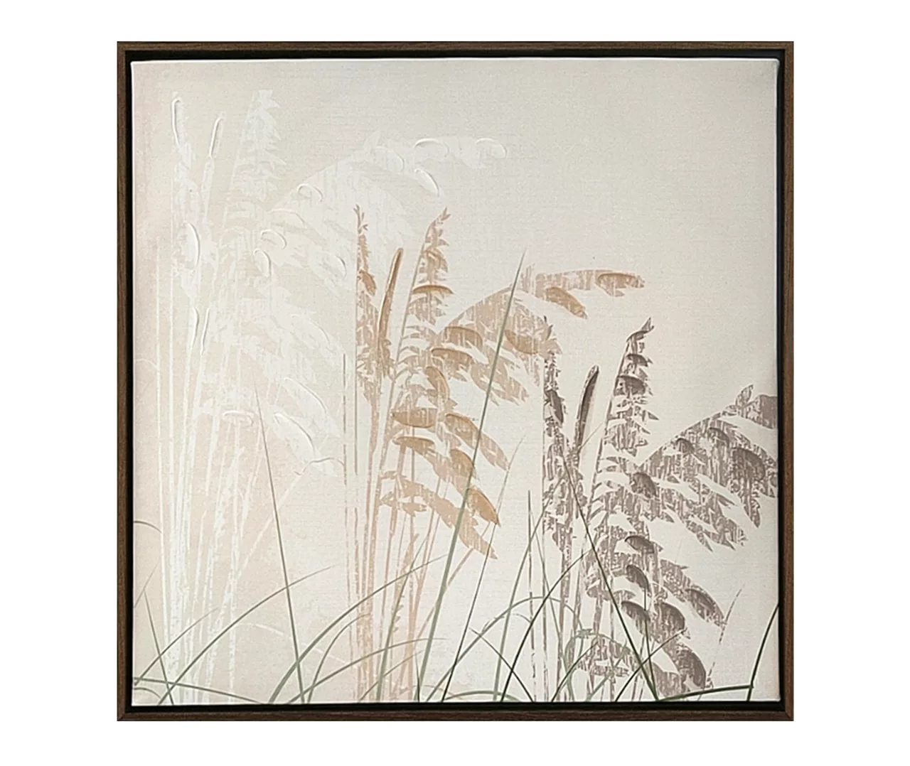 With a textured botanical design design, neutral color palette and slender black frame, this canvas is an elegant way to embellish your home décor with soothing nature-inspired style.