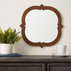 This brown wooden wall mirror is the perfect way to see your own reflection in style. With an elegant, classic aesthetic and lovely brown color, this mirror is a great way to give yourself a touch-up while beautifully accenting your home.