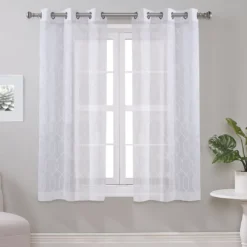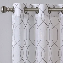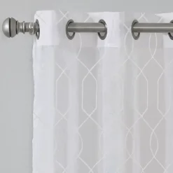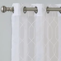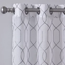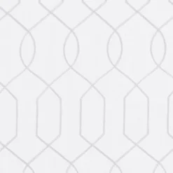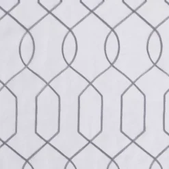 - All-over gray embroidered geometric design on white base for a refreshing update to your room