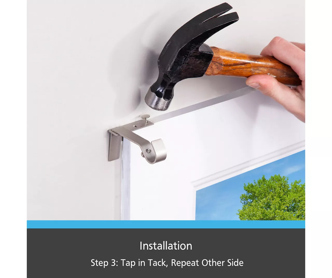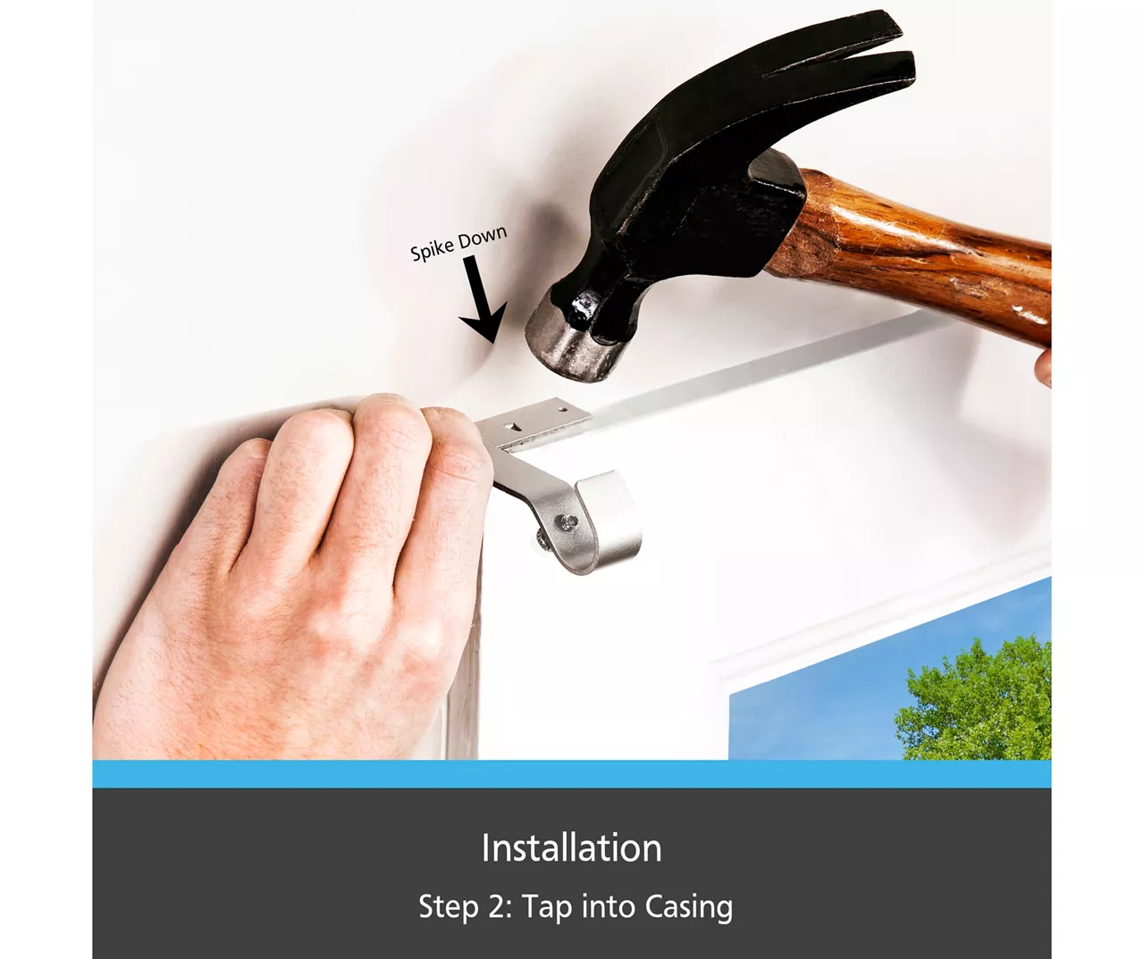 These Kenney brushed nickel curtain rod brackets are easy to install. By using your window casement to line up, they require no measuring. Simply position the brackets onto the top edges of your window or door wood casing and tap the included nails into place. They are recommended for use with curtain rods up to 5/8 inch in diameter.