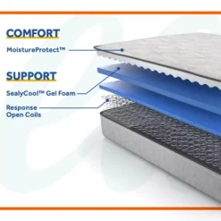 - SealyCool Gel Foam promotes a cooling environment and helps cushion, delivering comfort and support in a wide variety of feels