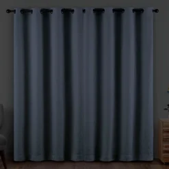 Find the perfect combination of fashion and function with the denim Cara window curtain from Eclipse. This beautiful panel offers Absolute Zero 100% blackout benefits with a premium thermal lining that gives a rich handfeel and provides luxurious drapability. It features a woven textured fabric in blue that makes it perfect for the bedroom, living room or any room in your home and allows you to enjoy all of the light-blocking, noise-reducing and energy-saving benefits.