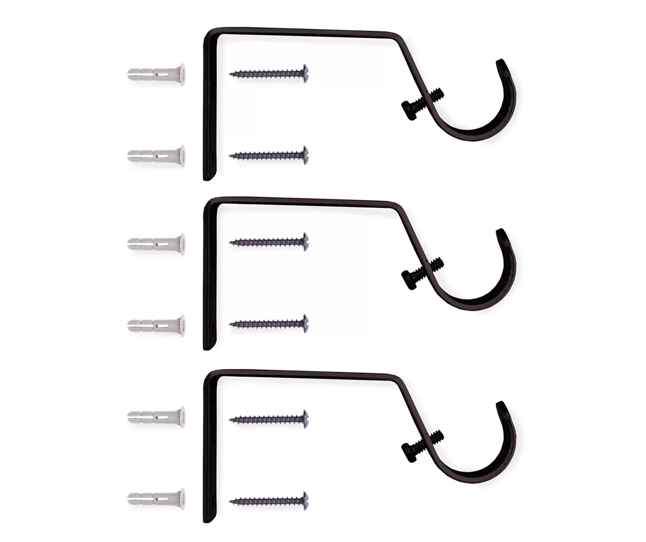 - Includes telescoping curtain rod with finials, 2 – brackets, center support, screws and drywall anchors