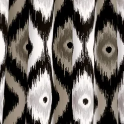 - A black and gray ikat print showcases bold design
