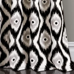 These diamond ikat room-darkening window panels are stylish and fun, adding an eye-catching pop of color and geometric design to any room in your home. Classic black and gray sit against pure white backing for statement-making style. These curtains also filter sun and heat to help save on energy. Hang them anywhere you could use a finishing touch of color and pattern.