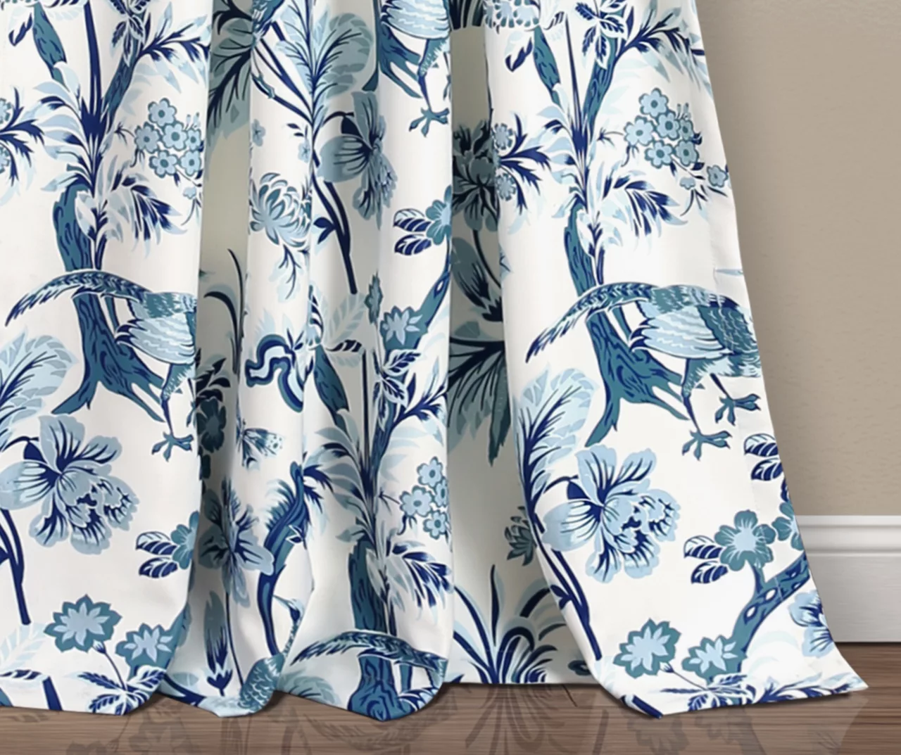 These unique window panels feature a lively design with beautiful blue peacocks, flowers and leaves. The light-blocking fabric is energy efficient and keeps the sunlight out while minimizing heat or air conditioning from escaping the room. Hang them in the living room, dining room, bedroom or anywhere you could use a statement-making touch of color and pattern.