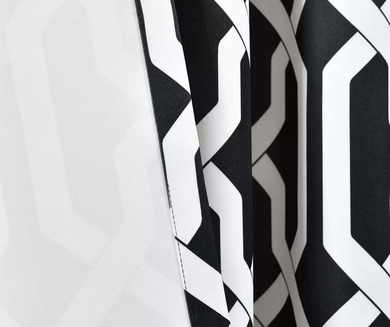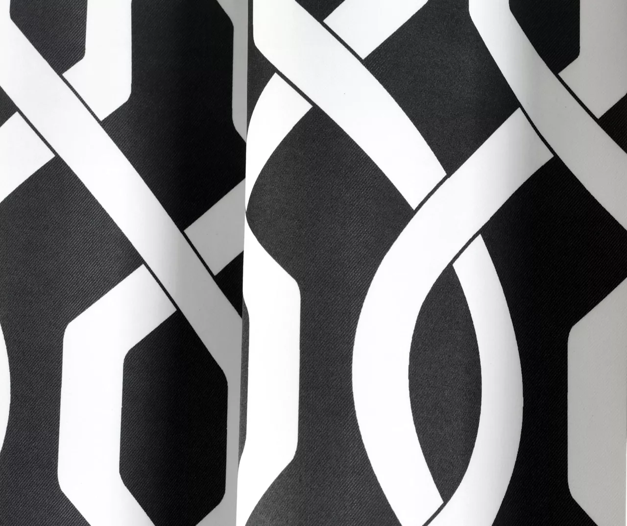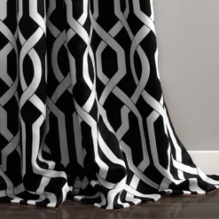 Enhance your decor with modern trellis window curtains. These energy-efficient room-darkening panels block sunlight, which leads to better temperature regulation of the room. The chic contrast of black and white makes a stunning statement in the living room, bedroom, dining room or office.