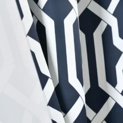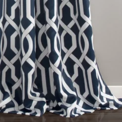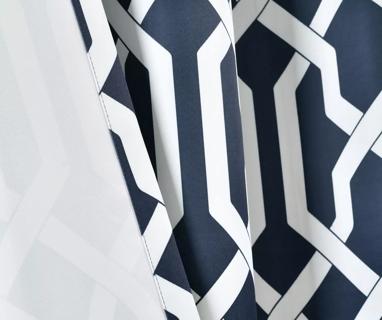 Enhance your decor with modern trellis window curtains. These energy-efficient room-darkening panels block sunlight, which leads to better temperature regulation of the room. The chic contrast of navy and white makes a stunning statement in the living room, bedroom, dining room or office.