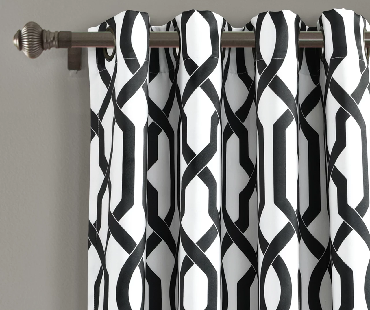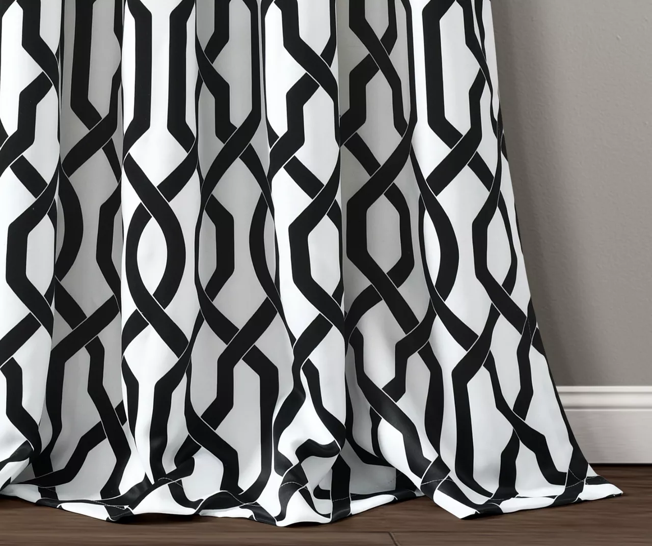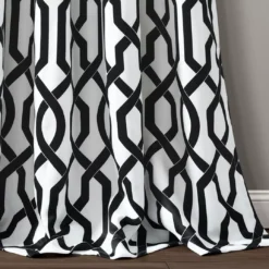 Enhance your decor with modern trellis window curtains. These energy-efficient room-darkening panels block sunlight, which leads to better temperature regulation of the room. The chic contrast of black and white makes a stunning statement in the living room, bedroom, dining room or office.