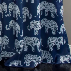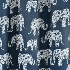 - Whimsical pattern showcases parades of floral elephants against a solid navy background