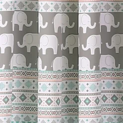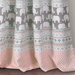 This delicately designed set of room-darkening curtains is ideal for a nursery, child’s bedroom or playroom. The soft colors combined with the playful sequence of patterns help to create a fun space. Rows of elephants appear alongside colorful geometric prints for a design that’s sure to spark little imaginations.