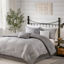 Kelan Gray Streak Patchwork Seersucker King 7-Piece Comforter Set