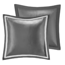 Add a touch of class to your bedroom with the Eliot comforter set. The luxurious textured jacquard comforter and shams flaunt a gorgeous damask medallion design with striation details on the satin ground that add dimension to the lavish look. A solid reverse and stunning Euro shams complement the top of the bed to complete the ensemble. Also included are two decorative pillows that feature embroidery and cording details, while a solid bed skirt provides a clean and elegant finish. Overfilled for superior warmth and comfort, this jacquard comforter set offers a strikingly luxurious update to your decor.