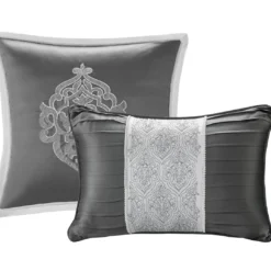 Be the first to review “Eliot Silver & White Damask Jacquard King 8-Piece Comforter Set” Cancel reply