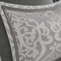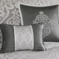 Eliot Silver & White Damask Jacquard King 8-Piece Comforter Set - Image 6