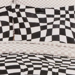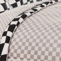 From Real Living’s Euphoric Expression collection, this bedding set offers a complete makeover for a master or guest bedroom. The bold and wavy checkerboard design on the comforter reverses to a gray straight checkerboard side for double the styling options, and the soft fabric wraps you in cozy comfort through the night.
