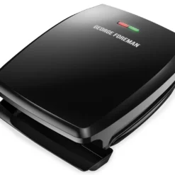 This grill features a cooking surface that creates healthy meals for four servings. You save over half the time compared to pan cooking. Who doesn’t want to lose the fat, not the taste? With its exclusive fat draining design, this grill removes up to 42% of fat. The nested tray controls spills and drips. Advanced George Tough Non-stick Coating is an industry leading coating 3X more durable than previous coatings and PFOA-free. With breeze through clean-up, this advanced non-stick coating easily wipes clean.