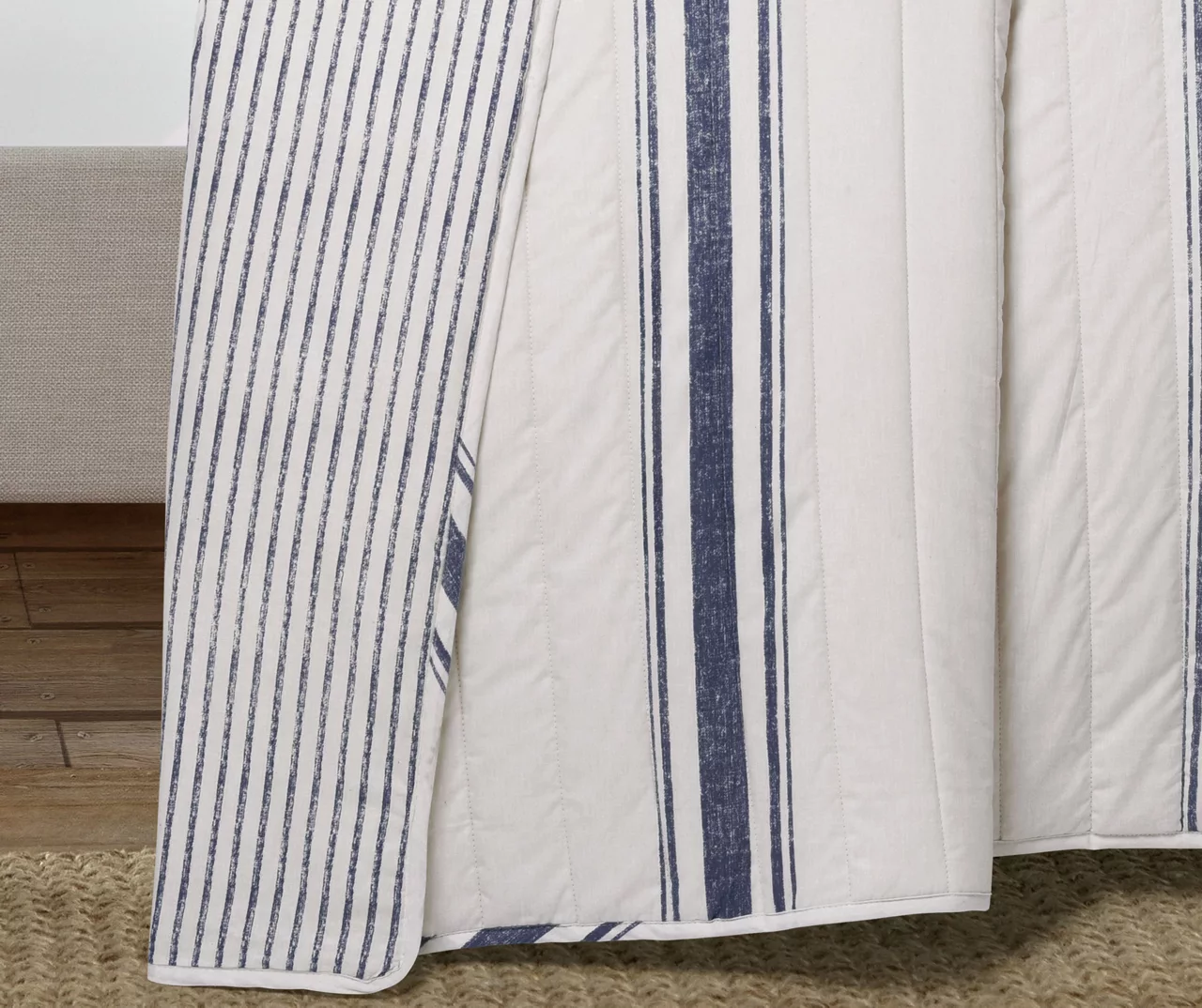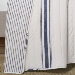 Farmhouse White & Navy Stripe Reversible King 3-Piece Quilt Set - Image 5