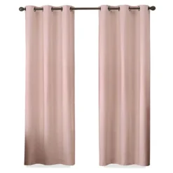 Find the perfect combination of fashion and function with the blush Gabriella window curtain from Eclipse. This beautiful panel offers Absolute Zero 100% blackout benefits and features a textured, tonal solid fabric in pink. It’s perfect for the bedroom, living room, dining room or office. Innovative foam backing is applied to the fabric and allows you to enjoy all of the light-blocking, noise-reducing and energy-saving benefits, while providing the same fashionable style and elegance of naturally flowing curtains.
