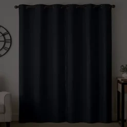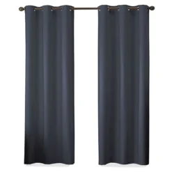 Find the perfect combination of fashion and function with the indigo Gabriella window curtain from Eclipse. This beautiful panel offers Absolute Zero 100% blackout benefits and features a textured, tonal solid fabric in blue. It’s perfect for the bedroom, living room, dining room or office. Innovative foam backing is applied to the fabric and allows you to enjoy all of the light-blocking, noise-reducing and energy-saving benefits, while providing the same fashionable style and elegance of naturally flowing curtains.