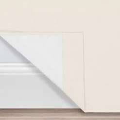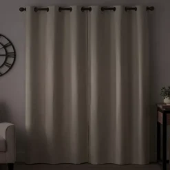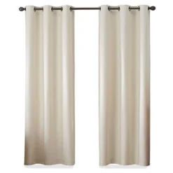 Find the perfect combination of fashion and function with the ivory Gabriella window curtain from Eclipse. This beautiful panel offers Absolute Zero 100% blackout benefits and features a textured, tonal solid fabric in off-white. It’s perfect for the bedroom, living room, dining room or office. Innovative foam backing is applied to the fabric and allows you to enjoy all of the light-blocking, noise-reducing and energy-saving benefits, while providing the same fashionable style and elegance of naturally flowing curtains.