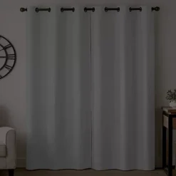 Find the perfect combination of fashion and function with the light gray Gabriella window curtain from Eclipse. This beautiful panel offers Absolute Zero 100% blackout benefits and features a textured, tonal solid fabric in gray. It’s perfect for the bedroom, living room, dining room or office. Innovative foam backing is applied to the fabric and allows you to enjoy all of the light-blocking, noise-reducing and energy-saving benefits, while providing the same fashionable style and elegance of naturally flowing curtains.