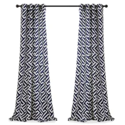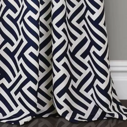 - Timeless geometric print in navy and white