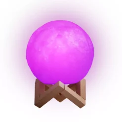 Bring the light side of the moon to your space with this unique table lamp. It features a realistic 3D moon design that rests on a geometric wooden stand. Use the included remote to choose from 16 LED colors, along with brightness and light mode settings.
