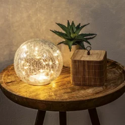 Bring a beautiful glow and style to any space decorating with this crackled glass orb light. The sphere features artistic cracks throughout its design as it illuminates from warm white LED lighting. Battery powered for easy placement, this piece is an exquisite addition to a mantel, shelf or table.