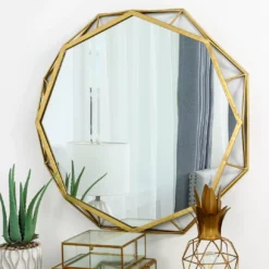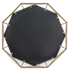 Flaunting a layered geometric design gilded in a goldtone hue, this octagonal mirror refreshes your room with modern style that makes a statement, while providing a feeling of extra space and depth. Keyholes in the back make installation quick and easy.