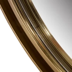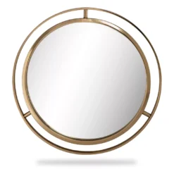 A round shape, doubled open border design and shimmering gold finish make this mirror an elegant and modern way to enhance your walls. Hanging hardware in the back ensures quick and easy installation.