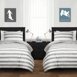 With soft, plush fabric, a striped backing and tufted texturing on the front, this gray comforter set is sure to keep you cozy through the night while refreshing your sleep space with modern style.
