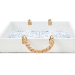 From Real Living’s Grecian Getaway collection, this lovely decorative tray imbues your home with coastal vibes inspired by European seaside vistas. The bottom flaunts a lovely blue and white tile pattern, and the bright white sides are secured with rope handles for added nautical flair.