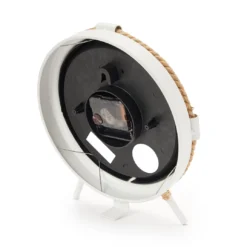 Decorate your home with the nautical vibes of this elegant timekeeping decor from Real Living featuring a white frame, rope accent and a simple white and black clock face. Slender legs make it easy to display on a desk, table or mantel, and a keyhole on the back also allows you to add this clock to your wall arrangements.