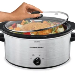 Prepare delicious meals in this five-quart slow cooker from Hamilton Beach. Use the low and high settings to cook and the keep warm function to retain the heat without overcooking. The versatile stoneware insert removes for easy transfer from crock to your refrigerator or oven.