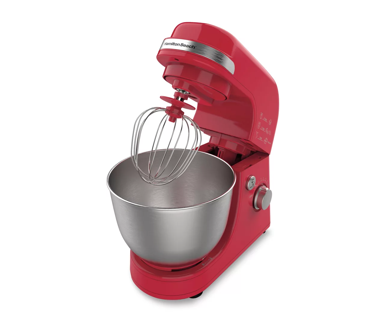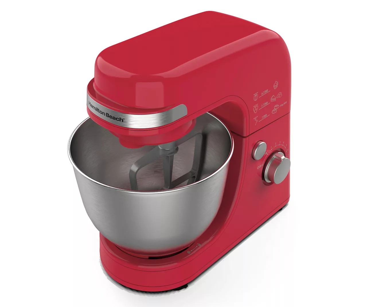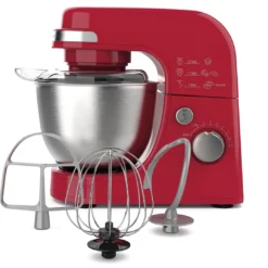 - Includes stand mixer, 4-quart stainless steel mixing bowl, whisk, flat beater and dough hook