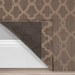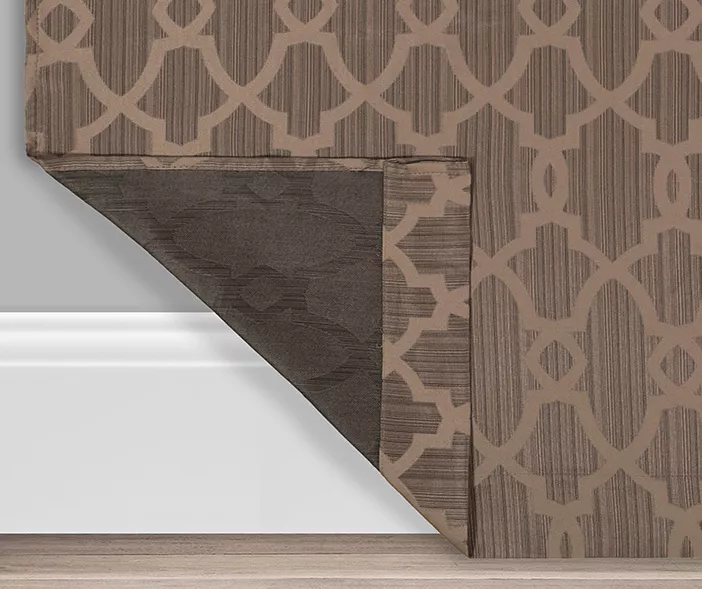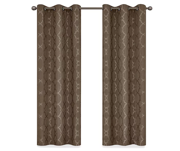 - Textured, tonal fabric features a geometric pattern in brown