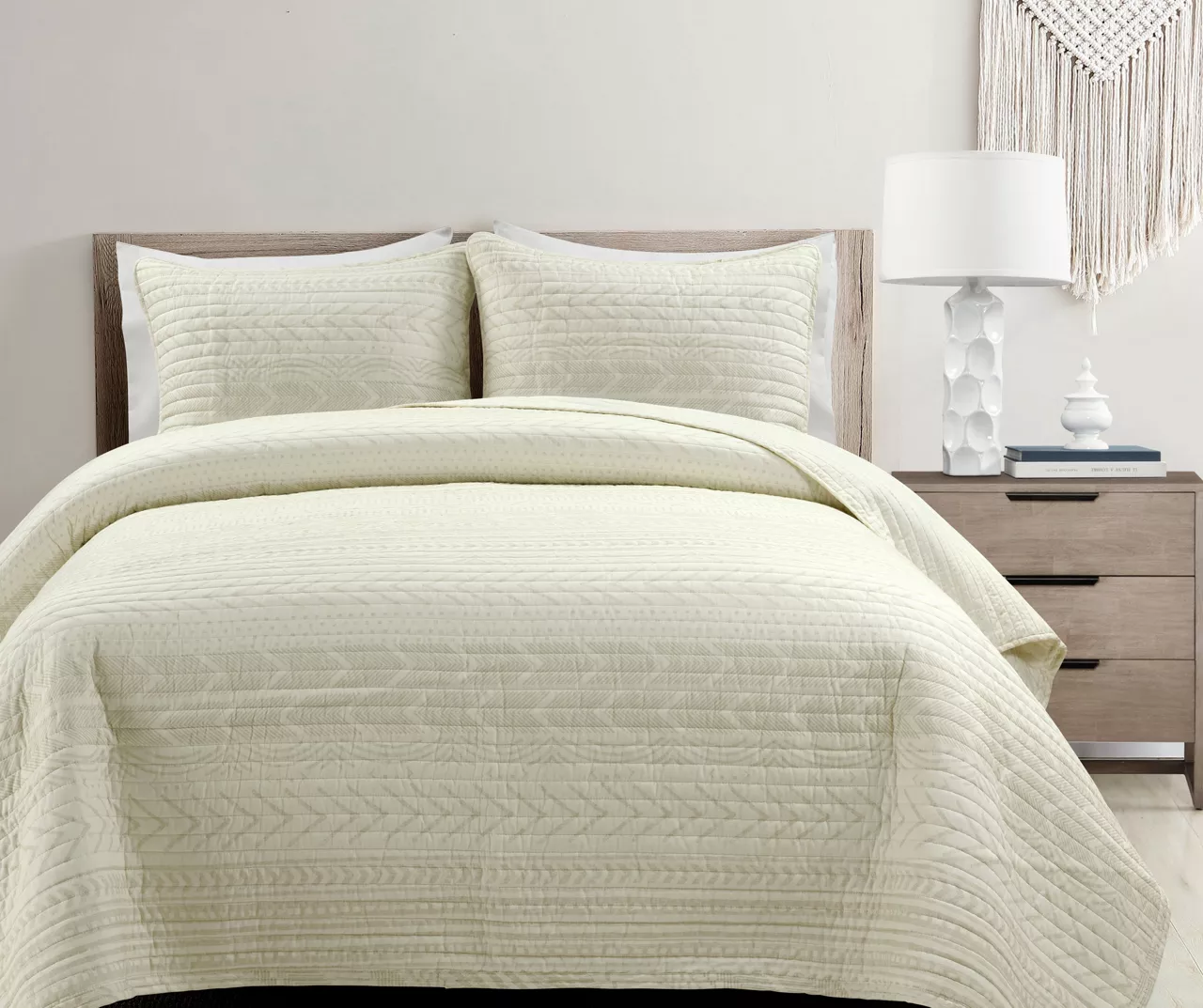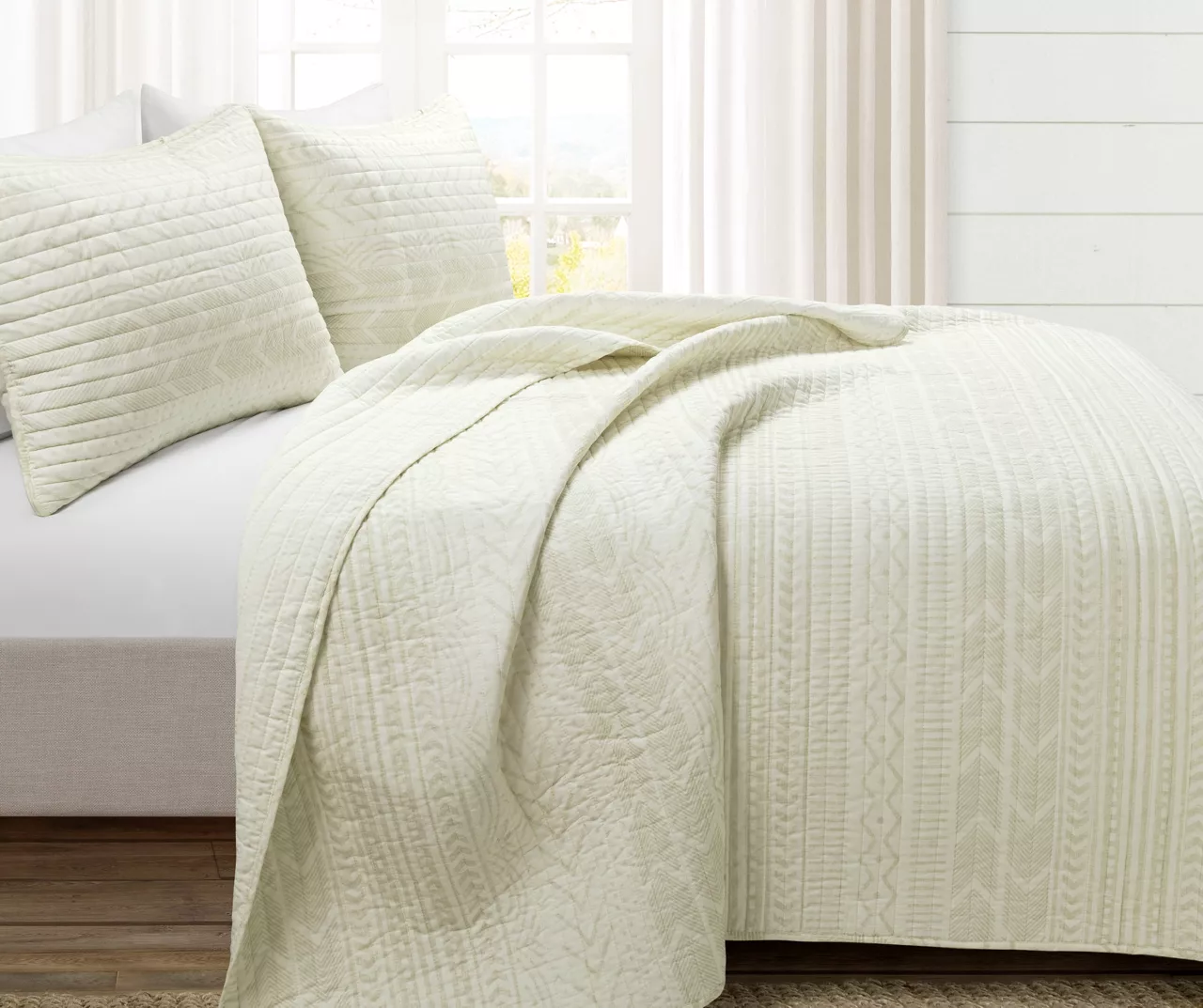 Style your sleep space with the free-spirited vibes and Scandanavian inspiration of this cozy quilt set from Lush Decor featuring rows of geometric designs in ivory and beige hues. Matching shams complete the look for a quick and simple bedroom makeover.