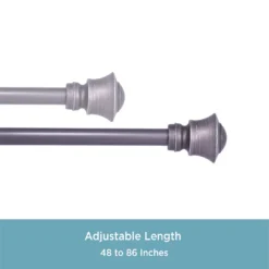 - Curtain rod adjusts from 48″-86″ and projects 2.8” from the wall