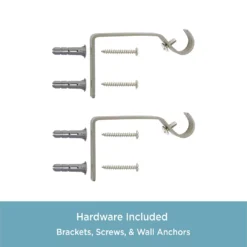 - Includes 1 – telescoping curtain rod with finials, 2 – brackets, screws, drywall anchors and installation instructions