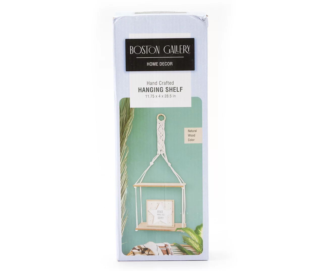 Display your small plants, picture frames and more with the bohemian charm of this macrame hanging shelf featuring a two-tier wood shelf design.