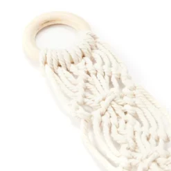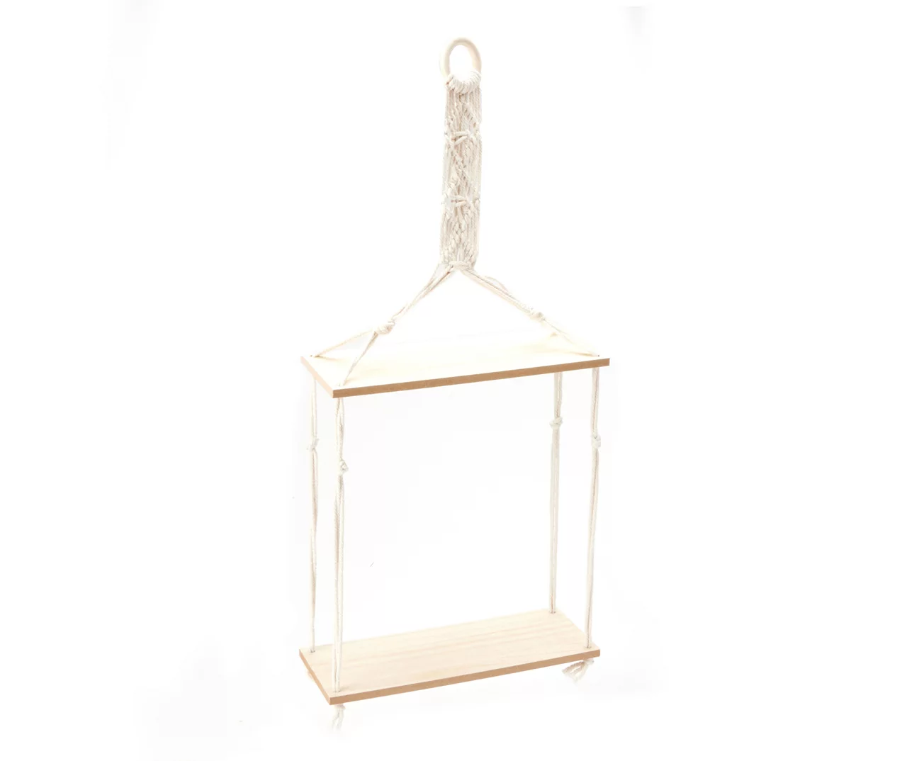 - Hanging macrame frame with a loop at the top